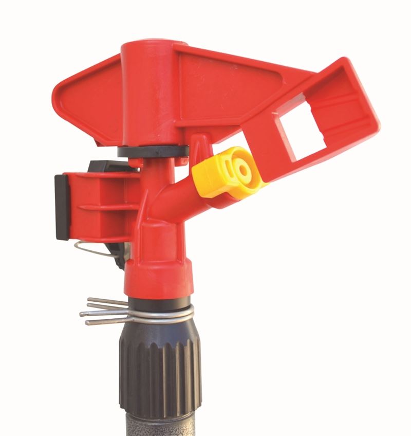 Its interchangeable nozzles and end plug enable this sprinkler to be used even with low water volume. It has 23° body angle and delivers high performance in windy areas.
